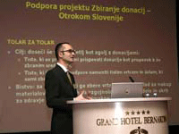 Slika s prireditve Zavoda Žiga Zois ob podelitvi knjig v skupni vrednosti 40 milijonov SIT slovenskim vrtcem in šolam, februar 2006.